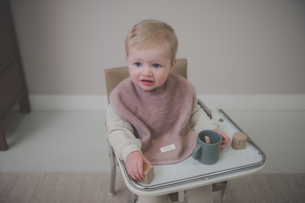 Houd de kleding van je baby schoon met deze praktische Koeka slabber. Door het fijne grote formaat beschermt de slabber de kleding goed tegen knoeien. Omdat de slab een drukknoopsluiting met twee verschillende standen heeft, is deze geschikt voor zowel baby als dreumes en kan je hem dus extra lang gebruiken. De afwerking met de bies die matcht met de kleur van het badstof geeft de slabber een eigen look. Het mooie lusvaste, vochtopnemende badstof is gemakkelijk en eindeloos te wassen.